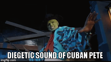 Most of the comical non-diegetic music comes from the main protagonist, only when he wore his magical mask and makes his sudden appearance. An example of this is when Ipkiss starts dancing with the "Cuban Pete" music to distract the police. From watching the youtube video, the non-diegetic musical also demonstrates the protagonist's bizzare, but yet cool demanour.